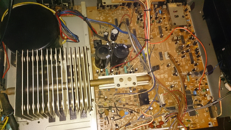 Reparei recentemente este receiver bastante bom para uma amiga. O problema era que embora ligasse e não apresentasse danos visíveis, o indicador de selecção de função deixou de aparecer e os botões de função nada faziam (CD, Aux, tuner, etc), e também não havia saída de som embora o display indicasse estações de rádio.