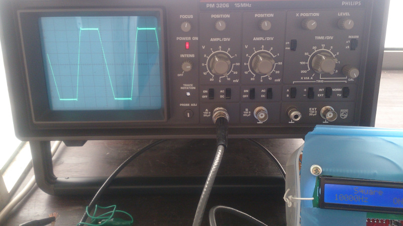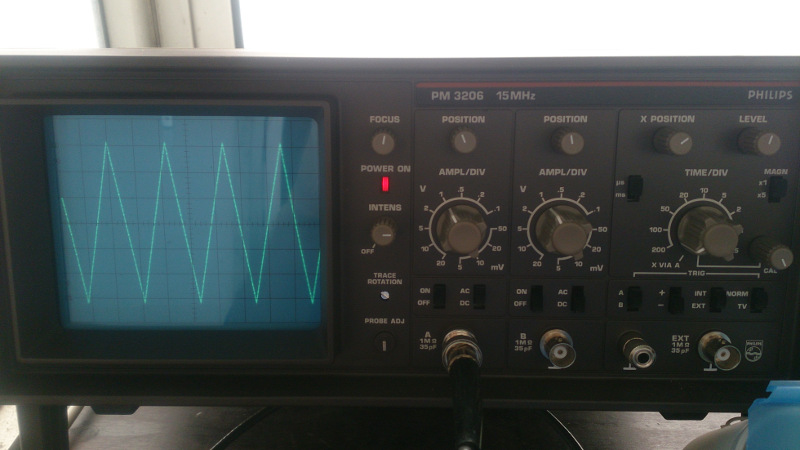 On switching it on, it worked the first time. I did a whole round of tests and it's working fine and seems well calibrated (although I would need a second oscilloscope to be totally sure). It has been working fine and been used regularly without giving any more problems. As it is really in a good shape and came in a nice aluminium box with all original accessories (including manuals and probes), I'm really satisfied with the aquisition. Above there are some photos, where it's shown working, on it's input a DDR function generator from China (they are quite nice, especially for the ridiculously low price, by the way).